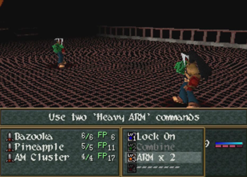 So mirror match! Brad has somehow acquired his Level 3 FP ability for this battle, and can now expend 75 FP in exchange for the ability to fire off two Arms in one turn.