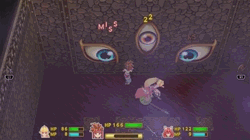 • Did you know? Kettle Kin, the second robot unleashed by the Scorpion Army, was inexplicably “censored” into being an exact copy of Kilroy in the original Secret of Mana USA version. However, Kettle Kin is back to normal for the remake, and sports his unique chainsaw and drill bottom. Welcome back, robo guy, please use your chainsaw responsibly.
