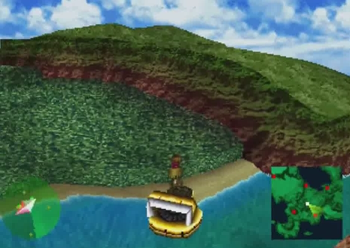 So this Diablo Pillar is smack dab in the middle of the ocean. There’s a triangle of islands that hide the pillar at the center, but Kanon’s radar works just as well on the hovercraft, so it’s not a big deal to find this one. Actually, with the “flatness” of the ocean, it’s one of the easiest pillars to uncover.