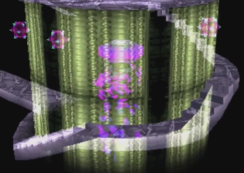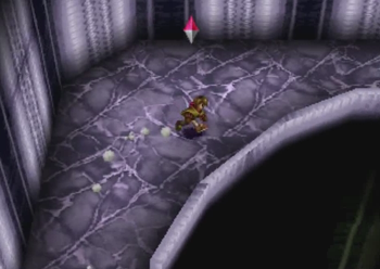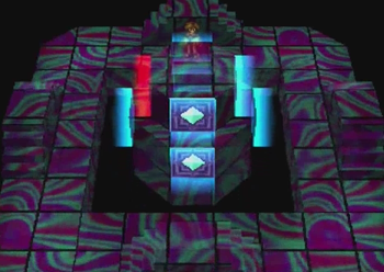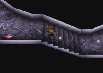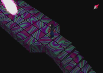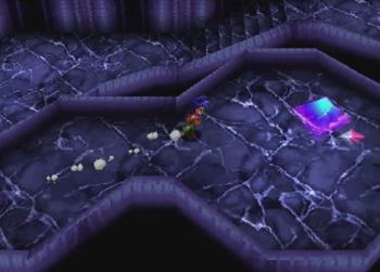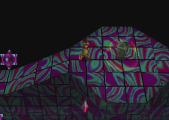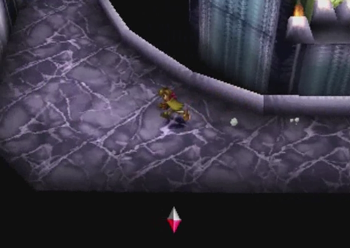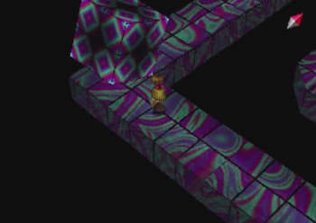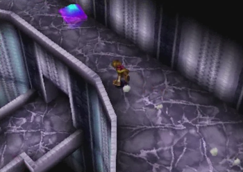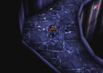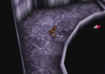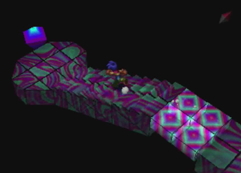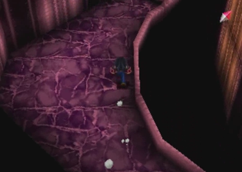 Top floor. The floors in this area are semitransparent, so if you swing the camera around just right, you can play with some weird pixel perspectives.
