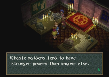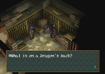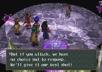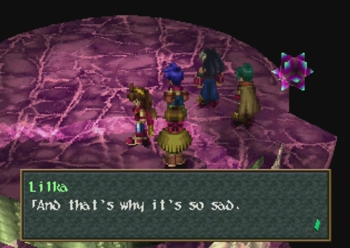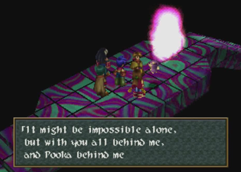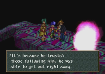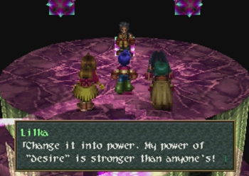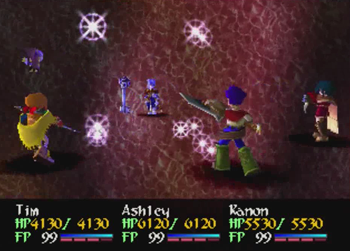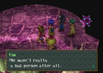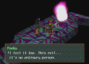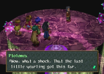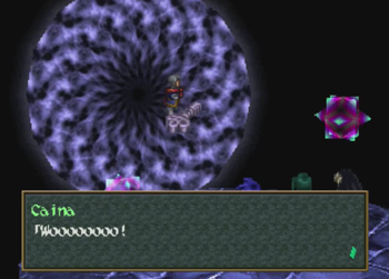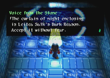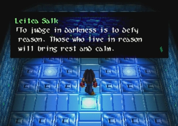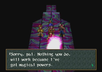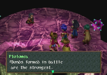 Anyway, Leitea Salk is the darkness medium, and it naturally confers a pair of dark elemental spells to Tim. Unfortunately, these spells are extremely situational, as 90% of the monsters in WA2 resist dark (because they’re monsters, duh). Leitea is more useful for its unique skill, Counterattack, which reverses physical attacks for one turn, and is very useful when you’re stuck in a one-on-one battle with random mooks. Or the mooks just use magic, and you’re screwed. Whatever.