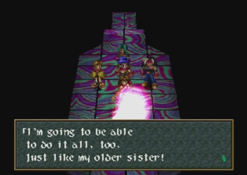 Each of these minibosses drops a new piece of armor for their matching hero. If you’re trying to maximize your Wild Arms 2 experience, hit the pillars in a proper order to kit out your most used characters. Or blindly bumble along like I am. Either way works.