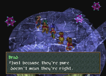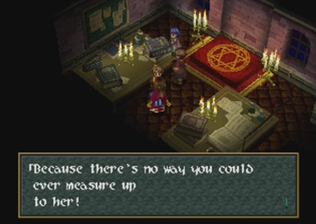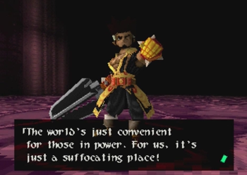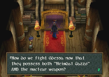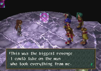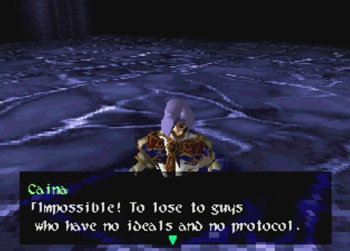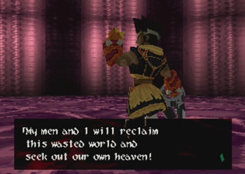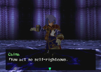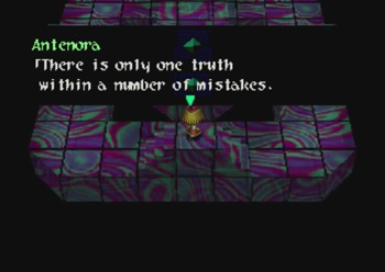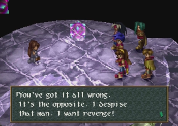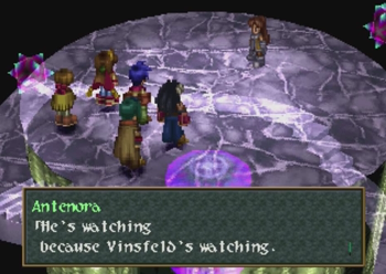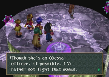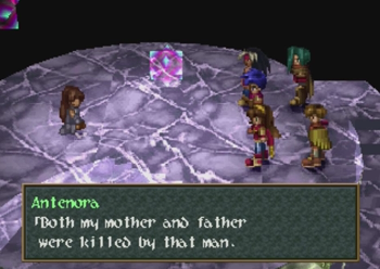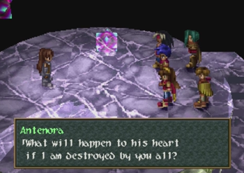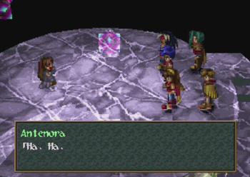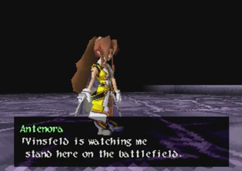 Antenora is a unique JRPG character up to this point. She’s a female villain (villainess?) in a JRPG, but she’s not the typical Claremontian sadist queen you usually see in that position. She seems pretty… normal (and, side note, she’s not wearing a battle bikini or S&M fetish wear). She’s also the de facto leader of Cocytus, and the entirely male (basically) organization looks to her for guidance. She’s not Odessa’s secretary, she’s not their token female here to say lady stuff and occasionally flirt with the hero; she’s a kick-ass general that appears to be the absolute most stable person on Team Bad Guy.