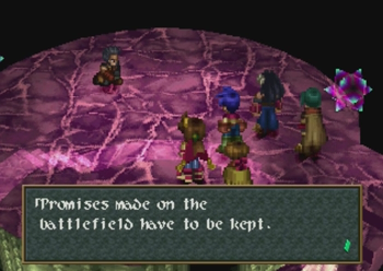 This is exactly what Brad said last update. Unfortunately, with WA2’s wonky localization, I have no idea if this is a deliberate parallel, or a fortune cookie that was floating around the Sony America offices. Maybe Ptolomea was in the Slayheim Liberation Army, too? Who knows.
