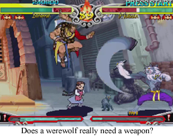 Of course, if you’re a Darkstalkers fan, you know the answers to all of these questions. Or maybe you don’t! Maybe you just like using the funny werewolf man to hit people with nunchucks. That’s okay, too! But what’s important is that, fan or not, it’s not nearly as easy for someone to “pick up and understand” Darkstalkers like Street Fighter 2. Look out!Yes, Darkstalkers is more exhilarating and flashy, but that flashiness blurs the lines between the fighters, and, when everyone is exciting, no one is. Street Fighter looks like a fighting tournament, Darkstalkers looks like… crazy nonsense.
