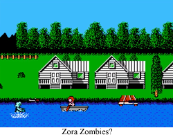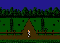 AH!Let’s revisit those “simple steps” with the technology (and actual game) of 1989. You’re supposed to light those fireplaces? Well, that’s great, but there is absolutely nothing that logs your lit fireplaces, so if you miss one cabin, you’re going to be searching the entire world over and over again. And not all of the cabins “count”, either, as there are hidden cabins in the woods that don’t impact anything. Want to waste all your time wandering the forest for no reason? That’s always fun! And the cave? Sure, Jason’s Mom is easy to find if you know where to look, but that’s another maze that could potentially be explored for hours without finding the exactly one room that actually provides a reason to be there. And Jason! Sure, the machete (and the later pitchfork) will actually eat chunks of Jason’s health, but it’s kind of hard to focus on that bar when a knife wielding maniac is hurling hot death directly at your face. And all the while, a constant stream of zombies are popping up everywhere, so you’re very likely to lose your councilor’s life not to the imminent threat of a mobile hockey mask, but just the mundane attrition of zombie bites. In other words, this entire game actively wants you to fail, and does absolutely nothing to guide the player.
