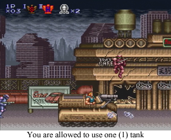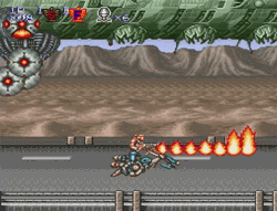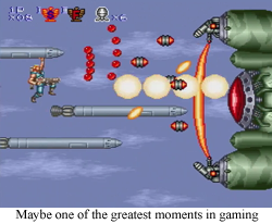 Contra 3: The Alien Wars is one of the few run ‘n gun games that presents a different playstyle every stage, but still manages to be absolutely perfect. Everything starts in a “basic” Contra stage, with invading aliens, marching soldiers, and the occasional giant turtle monster. Then it’s time for an overhead stage that is less wanton destruction and more hide ‘n seek. The third stage is predominantly climbing based, and the fifth level is a hunt ‘n kill in the desert. It’s only in the sixth and final stage that we return to the “original” gameplay of the first level, and then it’s time for a boss gauntlet that includes destroying a strangely high number of colossal organs. And sandwiched somewhere in the middle is the unbelievable Level 4, wherein Jimbo and Sully (real names withheld to protect the innocent) first ride hovercycles across a deserted highway (though it gets more crowded pretty quickly), proceed to fight a robo ninja beneath a helicopter, and then ride a series of missiles straight into an offending flying fortress. It is the most spectacular thing to ever happen in a Contra game!