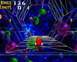 Other weirdness: The other reason to collect rings is to power a screen clearing special attack that costs ten rings. This is never useful, as there are never enough evil robots around to warrant a screen clearing attack, left alone one that costs precious rings. But you might hit the activation button anyway, and, if you do so with zero rings, you can actually accumulate a ring debt. Name another Sonic the Hedgehog title where you can have -10 rings.- Punishing Achievement: You can still access the special stages after earning all of the Chaos Rings, but, as an added challenge, the stages will now be entirely wireframes, with none of the platforms “shaded in”. This makes everything completely impossible, and is maybe the worst thing in an already pretty bad game.