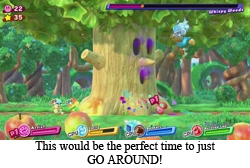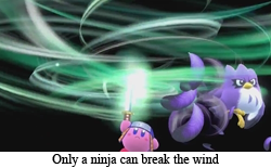 NINJA!We’re going on 26 years of Kirby, and Kirby’s main cast has absolutely not changed with the times. Kirby is the same hungry ‘n heroic puff he has been since day one. King Dedede is a greedy hammerhead of a flightless (kinda) bird (also kinda). Even the freaking tree with a face has been serving the exact same purpose since his introduction as Kirby’s first ever boss. Waddle Dee is Dedede’s minion whether he’s got a bandana or not, and Scarfy is still just as angry about Kirby’s inhalations now decades after that stopped being Kirby’s main offensive maneuver. Link, Samus, and Sonic might explore entirely new universes with every installment, but Kirby’s world has been rigidly defined from his inception.
