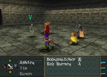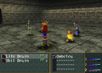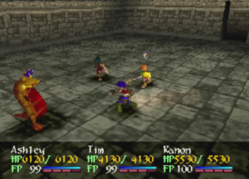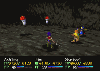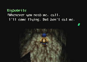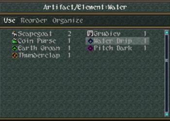 Rigdobrite confers a pair of uninteresting, non-elemental spells upon Tim. They’re pretty powerful, but they have significant FP costs, so they’re rarely useful. Rigdobrite’s unique command is Artifact, which allows any character to “use” one of those artifacts (only found in this dungeon) as an elemental attack. This can be pretty useful, as it means any of the bruisers on the team can nail an elemental weakness at any time… but, at this point in the game, they usually have better options available. But it’s the thought that counts!