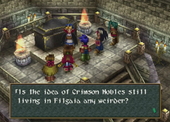 So there’s a Wild Arms anime, Wild Arms Twilight Venom (“TV”, get it?), that was released after Wild Arms 2. It was kinda sorta based on Wild Arms 2, or at least drew its version of Filgaia from WA2. There’s a Crimson Noble in that series right from the start, and she is not supposed to be Marivel. She is, physically, mentally, and spiritually a totally different character. However, she is named Mirabelle Graceland. Obviously, Marivel could be a mislocalization of Mirabelle. Marivel could also be a mislocalization of Isabelle/Isabel. And Wild Arms TV does make mention of an ancient Mirabelle Armitage. And, while we’re talking about ancestors and descendants anyway, all evidence points to Marivel Armitage being the last of the Crimson Nobles, so who the hell else could write a book about how the Crimson Nobles are all dead?