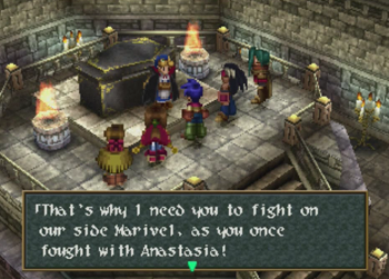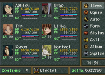 Marivel is our one hidden character, and brings our party count up to six. Incidentally, the final boss seems to assume you’ll have a full party of six playable characters, so I have to wonder if she’s really all that hidden. Note also that, unlike some games and their hidden playable characters, you will never reach a point in Wild Arms 2 when you cannot recruit Marivel.