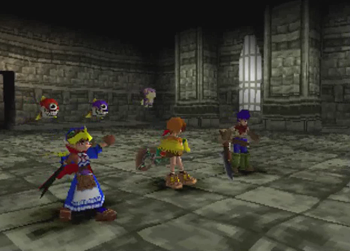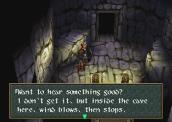 This dungeon has three rooms (with random monsters). The wind blows at timed intervals in each room.