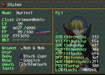 And, if you’re curious, here are Marivel’s starting (Level 99) stats. Please be aware that the goggles do nothing.