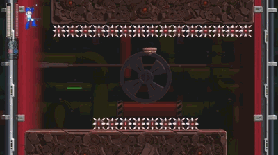 possesses no tutorial or opening stage, so, without trial and error, the instant death of spikes is initially equally as threatening as a common mettaur. It is only through trial and error that these lessons are learned, and if you chose the hardest stage to start, well, hope you have the patience to discover the rest of the game isn’t nearly that punishing.