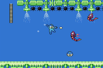 Sink or swim, Mega Man. Classic Mega Man stages are less about teaching the player new tricks, and more about tossing ‘em in the deep end right from the start.