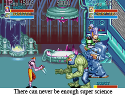 BABY!Captain Commando might have one leg up over its descendant: you can ride a robot. You can also score a missile launcher. Captain Commando is basically Golden Axe in a few weird respects, as riding creatures and nabbing interesting (and temporary) weapons is the name of the game (wait, did variable weapons happen in Golden Axe? Meh, I need to be awake to write this article, so I’ll skip replaying that one). Beat ‘em ups do get pretty monotonous pretty quick, so making a dash for that heavy artillery is a great way to spice things up (and send a few Scumocide henchmen to the great, flashing beyond).