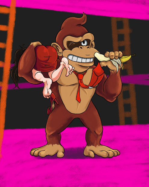 This is where it all started for the Nintendo empire: an ape that really, really wants to sling a random woman over his shoulder and carry her Arceus-knows-where. But there is little question what Donkey Kong is going to do when he gets there! He’s a big, naked ape, and she’s a beauty worthy of a Jump Man’s gaze… we already know what happens if you fail to climb that construction site. Donkey Kong Juniors don’t just pop out of eggs! Sure, one could claim this is all borrowed imagery from King Kong, but King Kong didn’t just stand next to Fay Wray beating his chest and smiling all day.
