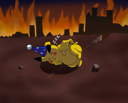 Well, let’s just say that the coming energy shortage and associated apocalypse isn’t bothering the yellow mouse one iota. Pikachu has a party hat, and he’s going to use it, dammit.