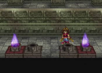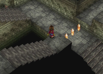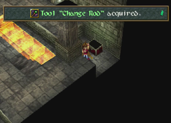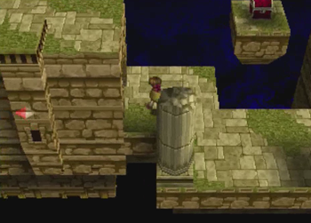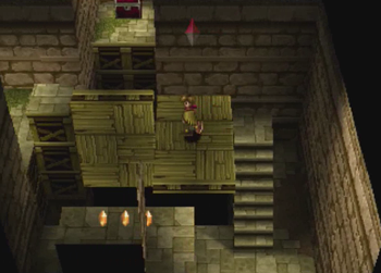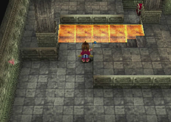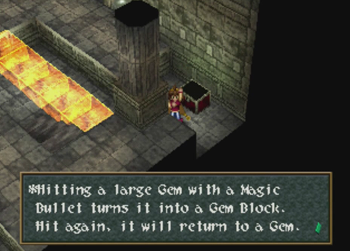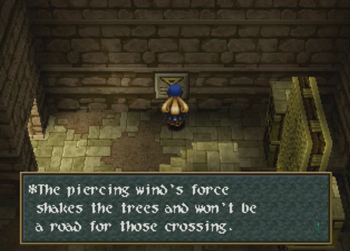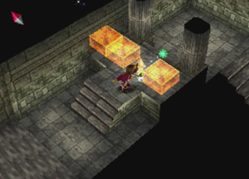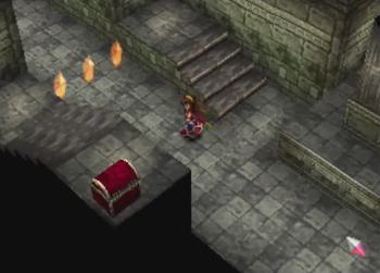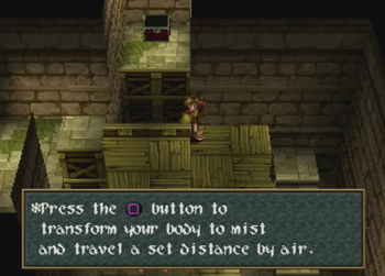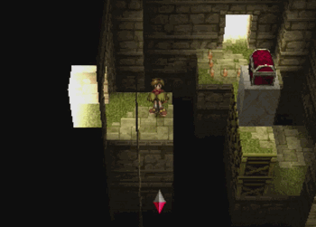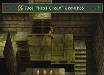 Mist Cloak is going to be useful from now until the end of time (unlike about 90% of the tools in Wild Arms 2), and it even gets a special bonus move in this dungeon. Fans will blow misty Tim around these rooms, meaning the lil’ dude will be able to cover a lot more than one block’s worth of space.
