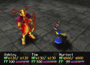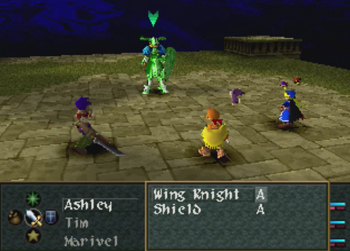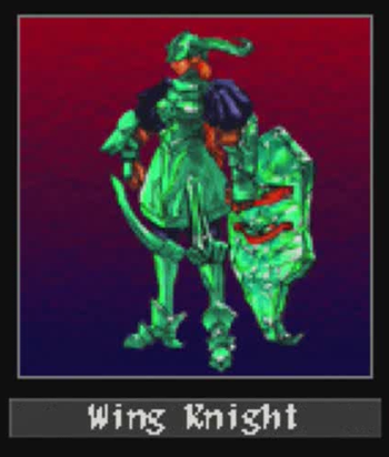 Wing Knight seems vaguely defensive, and will blow some turns on buffs that don’t really work that effectively (see also: all of Wild Arms 2, 90% of PSX JRPGs). However, if you destroy her shield, she will get a little more offensive with some full-party attack spells.