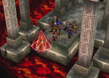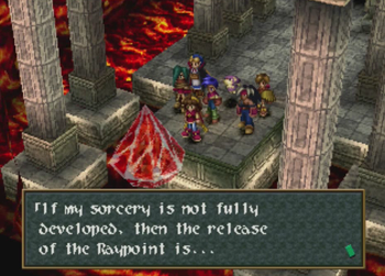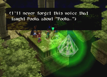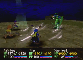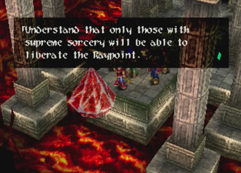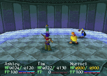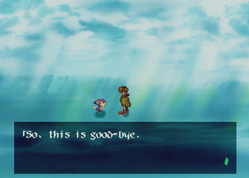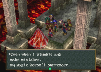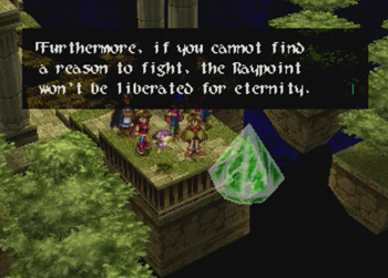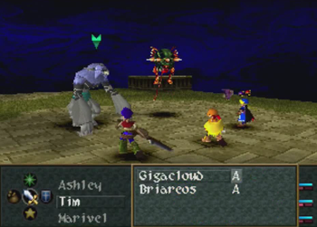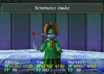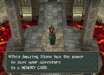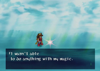 The boss disintegrates into a save point. A save point after the boss? Poor sportsmanship, Wild Arms 2.
