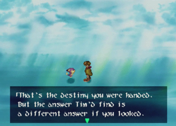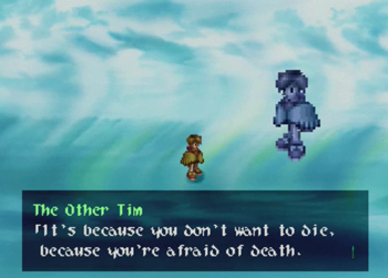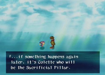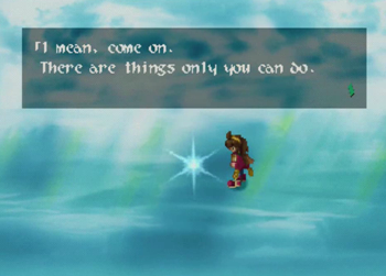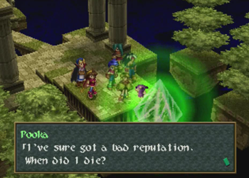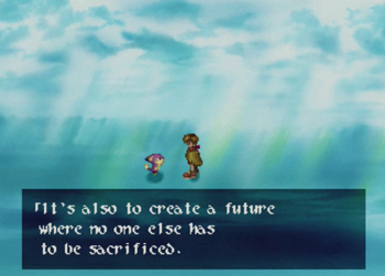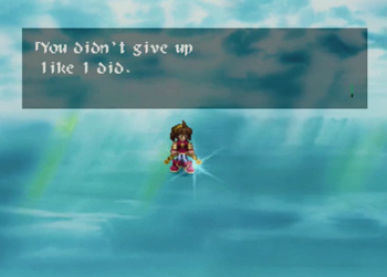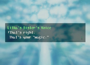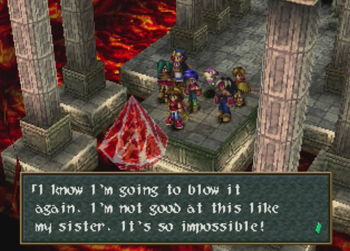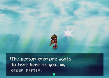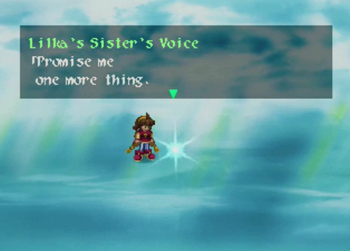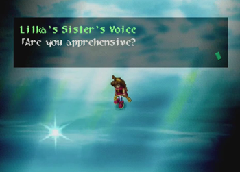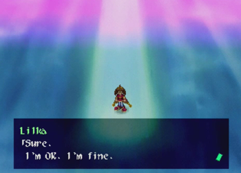This is in reference to Lilka not sacrificing her life for Ashley in the Millennium Puzzle back at the start of Disc 2. Considering that Ashley and Lilka survived that whole adventure entirely intact, it kind of implies that Lilka’s Sister maybe should not have sacrificed herself for Lilka…