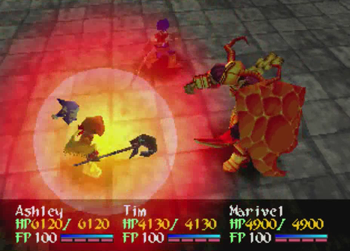 He confers Full Clip, which is a skill that allows Ashley to empty an Arms’ entire bullet clip on an opponent. As you can probably guess, it will do a lot of damage. No damn idea why you would bother when Ashley has Knight Blazer available to kick major ass at just 25 FP more, but it’s nice to have.