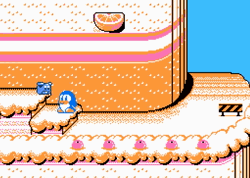 And Yume Penguin Monogatari feels like it may be an answer to all those crying Nintendo kids. Yes, thanks to the timer and weight requirements, it may be impossible for some people to beat even the first level, left alone finish the entire game; but will everyone be able to see the majority of level 1? It’s pretty likely! Penta merely “trips” or inflates to bulbous size when attacked by an enemy, and is not immediately obliterated like so many Gradius defenders. And that’s great! The worst part of any of those one-hit kill games (or games that require a continue after rapidly vanishing “lives”) is that it was nearly impossible to be prepared for the end of a level. People expect increasing difficulty, so it’s only natural that the end of the stage would be the most challenging section. But if you spent all your lives on the initial, “easy” bits (because you’re, ya know, an eight year old just trying to have fun), then the finale is simply going to be a swift kick in the teeth before getting booted back to the beginning. In Yume Penguin Monogatari, however, you actually have a chance. Yes, Penta might be waddling along at maximum fat levels, and it might be abundantly clear that he’s going to get his tubby tail feathers dumped at the end of the stage, but at least you get to see what’s at the end of the stage. At least you get to play the actual game, as opposed to simply being annihilated at the starting gate. At least you can learn from your mistakes, and not be completely blindsided/destroyed by some manner of pig-zeppelin at the end of the level.