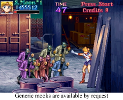 But somehow more miraculous than all of that is the title’s bestiary. While the average beat ‘em up might have a memorable boss or two (that might even wind up in a Street Fighter title for years), the generic guys of a beat ‘em up are traditionally as forgettable and indistinguishable as a flock of seagulls (or A Flock of Seagulls). Inevitably, you’ve got a skinny nerd, a fat guy, some tall dude that is a makeshift leader, the female of the species, a demoted boss from the first level, and some kind of heavy that is used sparsely in early levels, but shows up in droves toward the end. And that’s it! Maybe there’s a robot somewhere in there? That’s about the best you can hope for. Sailor Moon, meanwhile, employs: