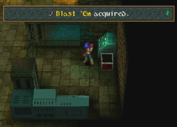 Blast ‘em is Ashley’s last non-hidden, easily obtained Arm. Blast ‘em hits a whole party of monsters, so it’s pretty useful for large groups of mooks you need to clear out quickly. Unfortunately, basically none of the super difficult battles in WA2 are group battles, and it’s a lot more economical to use guardian summons or magic for general monster mobs. But still! Nice to have!