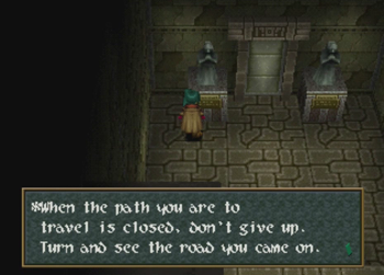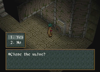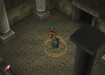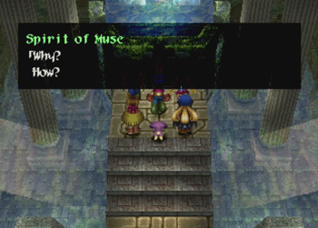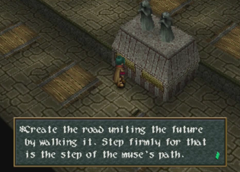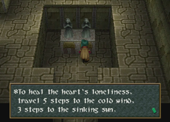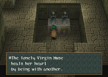 Clues to our next two puzzles are inscribed on these statues. At least there is some synergy between “Muse”, the Wild Arms 2 designation for “water”, and “Muse”, the Greek ladies that are responsible for all artistic inspiration (but, like most artists, didn’t get laid very often).
