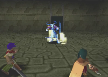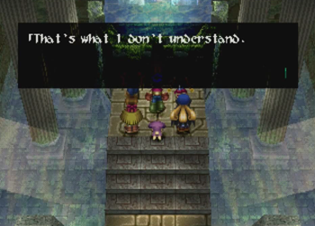 Incidentally, as this is our last Reypoint dungeon, I’d like to take a moment to note that this quartet of dungeons is more interesting than the similarly themed Diablo Pillars of the first disc… but they’re still kind of lame. Tim’s dungeon is the only one that really feels like it was fleshed out, and Brad’s dungeon was generally visually interesting with its moving and falling platforms, but the other two dungeons seemed a lot like filler. Look, Wild Arms 2, we know you have a supporting cast with interesting characters that feel like they should have their own signature dungeons, but maybe try a little harder to make those dungeons interesting, too.