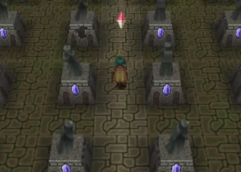 As clued a few statues back, the goal of this Illusion of Gaia-ass puzzle is to make sure each and every Muse statue is looking square in the face of an adjacent statue.