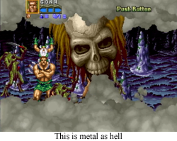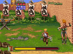 But Golden Axe 2 wasn’t terrible. In fact, Golden Axe 2 holds a special place in my heart, as, back in the day, my beat ‘em up-addicted neighbor and myself (am I trying to imply that I don’t have a beat ‘em up addiction after writing about four of ‘em over the course of the last month or so?) played Golden Axe 2 solid for nearly an entire year (which is like twelve billion centuries in kid time). GA2 was a two player beat ‘em up that featured a dwarf and murder skeletons, so it obviously had something going on. And, while we barely ever made it to the finale (damn limited credits), we played that title over and over again, because it was just the right kind of mindless fun that is perfect when you’re a kid. You can ride a beast! You can run really fast and headbutt a soldier with a pointy hat! Murder skeletons! That’s some good stuff!