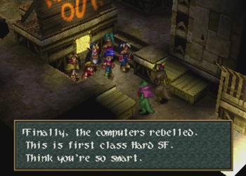 And I believe the “Hard SF” computer is named after the according genre of (S)cience (F)iction. Hard SF generally tries to be more “scientific” and more plausible, and explain stuff more than “soft SF” does. I’m not quite sure where the borders lie – all science fiction is ultimately speculative fiction! But I think that’s what Liz saying the three terminals were Hard, Soft, and “Regular?” was about.