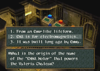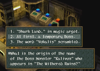 Though, again, some of these questions are completely nonsensical. Kalivos was one of the first bosses in the game, and… maybe this is an admission from the designers that that name was only supposed to be a placeholder in the first place? Lousy translation…