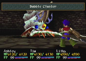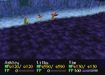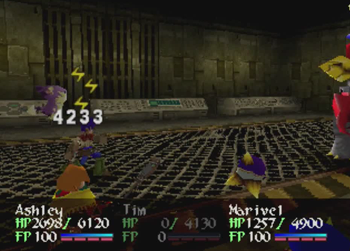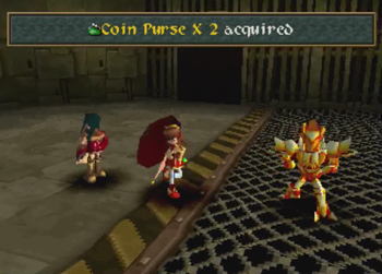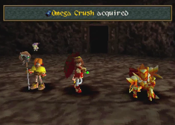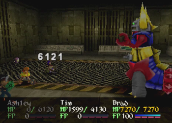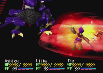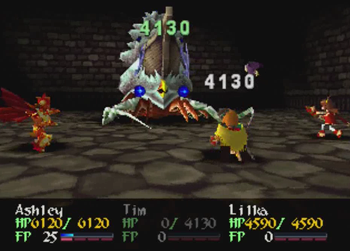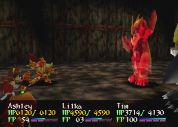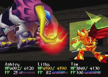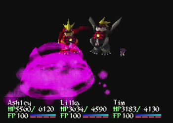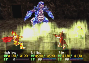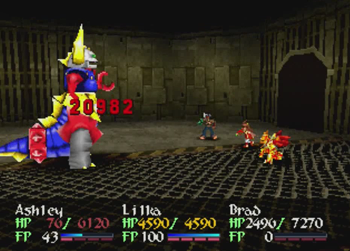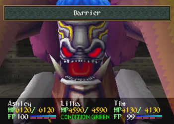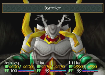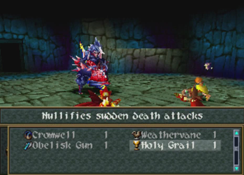 Using the Holy Grail item with Lilka’s mystic ability is supposed to guard the entire party against instant death attacks. This dork didn’t wind up using its instant death attack after sipping from the Holy Grail, though, so I can’t say for certain if that actually works in this battle.
