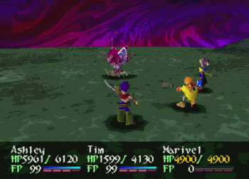 It’s pleasant that this arena background is only used once in the game back during Disc 1, but it is updated with the “threatening sky” of Disc 2 for this battle. That will be the only pleasant thing about this battle.