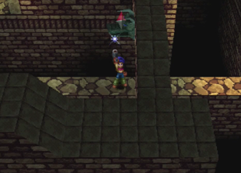 The entrance here requires using Marivel’s spark tool to activate the front door. You might expect this dungeon that can only be unlocked by Marivel would require using Marivel’s other tools as well… but nope! Sorry! Marivel, who, incidentally, has never met Liz & Ard before, will not be used anymore within this dungeon.