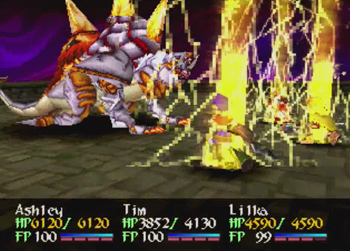 Oh! I finally remembered to use Lilka’s force ability to combine two spells. Lit1 + Lit2 = Lit3. As you can see, it does massive damage, and is very useful when you’re dealing with opponents that have an elemental weakness.