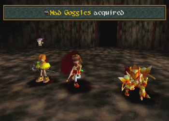 Our reward is Marivel’s best “helmet”. Most of the best armor in the game is available at the base of the final dungeon, but Marivel only earns her equipment through Marivel means. Her “best” weapon is also her only weapon, which is strengthened through (findable) consumable items. And I think her best cloak was back in the Thunder Lion’s Cage hidden area. So, sometimes, goggles are all you get.