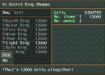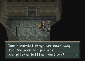 So what’s to be done about ol’ Ragula? Well, you’re in for a treat, as Ragu is resistant to all elemental attacks save fire, which it absorbs. It also alternates between a super-powerful fire attack, and a super-powerful dark attack. This means you can’t just rely on one elemental ring, but you can hedge your bets, and equip one character with a Fire Ring, and the other with a Dark Ring. At least then someone isn’t getting one-shotted every turn.