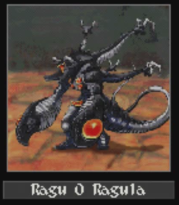 Ragu O Ragula appeared in Wild Arms 1, and would go on to appear in Wild Arms 3-5. In at least a few Wild Arms titles, Ragu O Ragula gets some backstory naming it as the king of all monsters, and is banished to The Abyss, an extra dimensional prison constructed entirely to contain it. What I’m getting at here is that Ragu O Ragula is bad news.