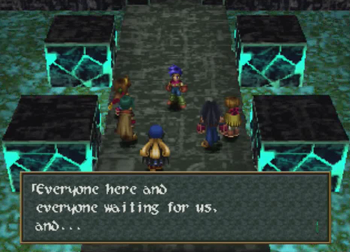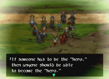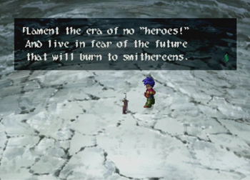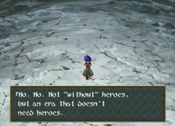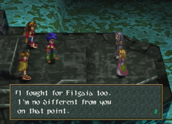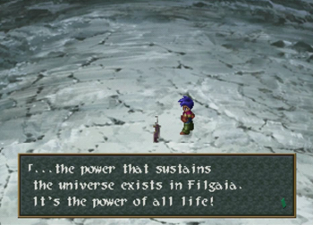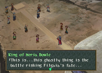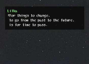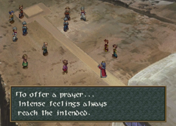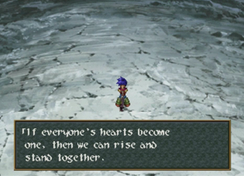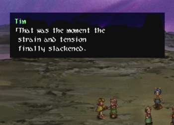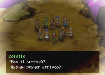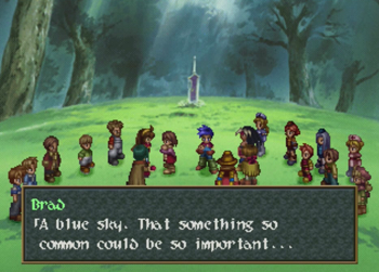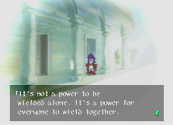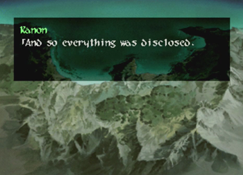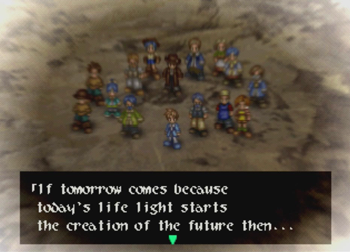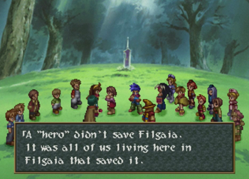 “And so everything was disclosed. At the beginning and end of this battle was a sin named Valeria. The ‘sin’ was called a ‘hero’. If the lives in Filgaia survived because of this sin, then its continued life at its atonement. Those who can atone are… The cross that is too heavy to bear alone is no longer so when everyone on this star supports it. Sleep now, the blood of Valeria. No one needs a ‘hero’ anymore now that they’ve realized their might. If the darkness meant to destroy Filgaia’s future is dismantled, the chant of peace hoped for will be heard.”