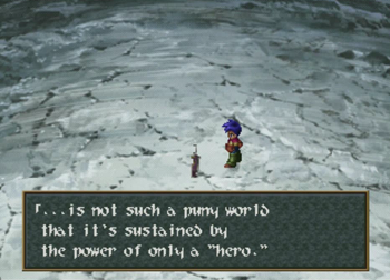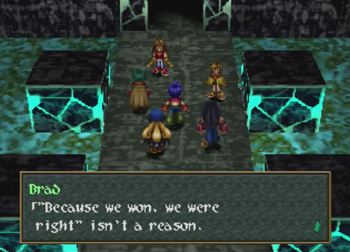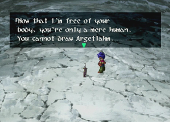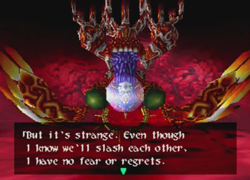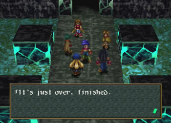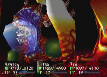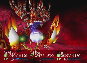 So the basic priorities of this battle are 1. Keep Ashley healed, then 2. Use Impulse when 25 FP is available, and if not 3. Swing around that sword until you’ve got 25 HP. It’s not completely mindless, and, as far as “JRPG Final Boss Scripted Battles” go, it’s pretty interesting. At least you’re not casting Stone on some magical tick…