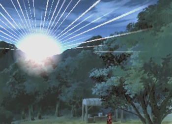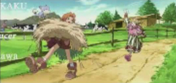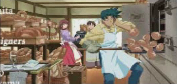 We hit the credits. The credits run along slides of various anime-tastic scenes, like…