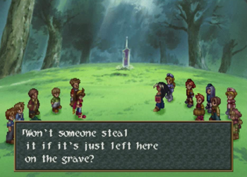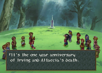 Aw, they used the magical sword as a grave marker. Obviously, Irving and Altaecia are technically buried at the center of the planet resting peacefully ventilated by about ten thousand bullet holes.
