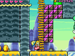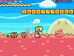 So it did make a certain amount of sense that Princess Peach would receive her own adventure. It would be fun to make Mario the “damsel” for once, and Peach already has a quasi-moveset and some support abilities from previous adventures. Add some floaty jumps, maybe include some central gimmick, and… hey! Mario isn’t using 2-D platforming right now. Let’s throw that genre over to Princess Peach, and see what she does with it. It’s a perfect fit for an experimental DS game!