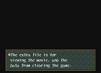 The clear file is a way to “review” your final game data, and maybe rewatch a few cutscenes. Let me tell you: rewatching anime cutscenes was all we had back in the earliest 21st Century. Why, I remember when Lunar…